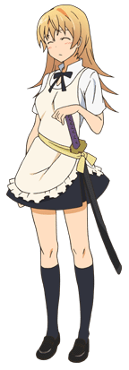 Yachiyo's family owns a blade shop where they make everything from kitchen knives to katanas, which is why Yachiyo is always seen with a katana around her waist. Because of this, many people are intimidated by her and think that she is dangerous. However, she only carries it around because she is proud of her family's business, saying that their slogan is "If it cuts well, it stabs well!" Although she carries around a katana, she never uses it. She has only drawn out her katana twice in the series. Both times were because Yachiyo believed someone was stealing Kyouko Shirafuji away from her. The first time was when the owner of the restaurant, Otoo-san, brought sweets to the store, and Kyouko started eating them. Yachiyo believed that the owner was trying to lure Kyouko away from her, so she lunged at him with her sword, crying out that she would kill him. Thankfully, before she could, Kyouko walked in and said she was bored of the sweets, and wanted Yachiyo to go make her a parfait. After this, Yachiyo went back to normal and happily made her a parfait. The second time she used her katana was when she thought Jun Satou was in love with Kyouko. She questioned him about it, then pulled out her katana to threaten him. Satou sighed, sad that she didn't realize his feelings for her, then called her an idiot. Yachiyo then realized her mistake and apologized. Yachiyo is seen as scary whenever she is sharpening her katana in the kitchen because people think she's going to use it, but she only sharpens it to keep it in good condition.